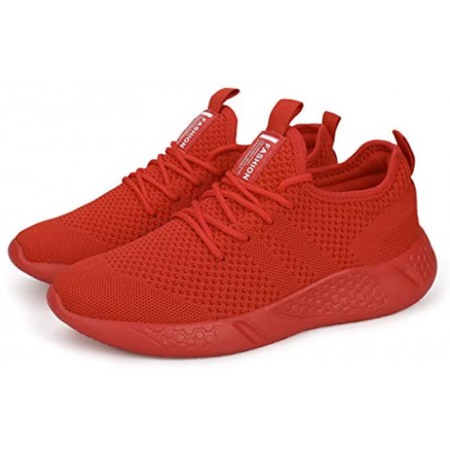 Men's Non Slip Gym Sneakers Lightweight Breathable Athletic Running Walking Tennis Shoes Red